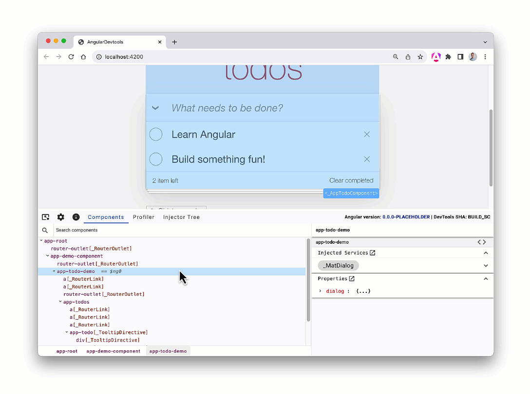 아래 애니메이션을 확인해 보세요. 그리고 자세한 내용은 angular.io 사이트의 Angular DevTools 문서를 참고하세요.